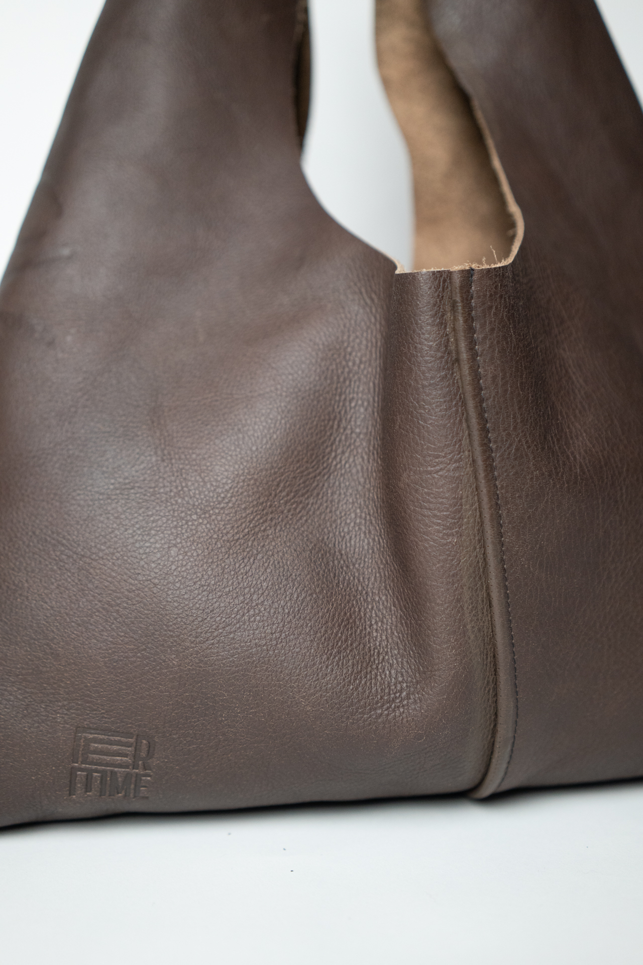 Handbags sewn from the highest quality natural leather, sourced from upholstery rejects and production leftovers from other brands. Every piece of leather is second-hand, making this design upcycled and environmentally friendly.
