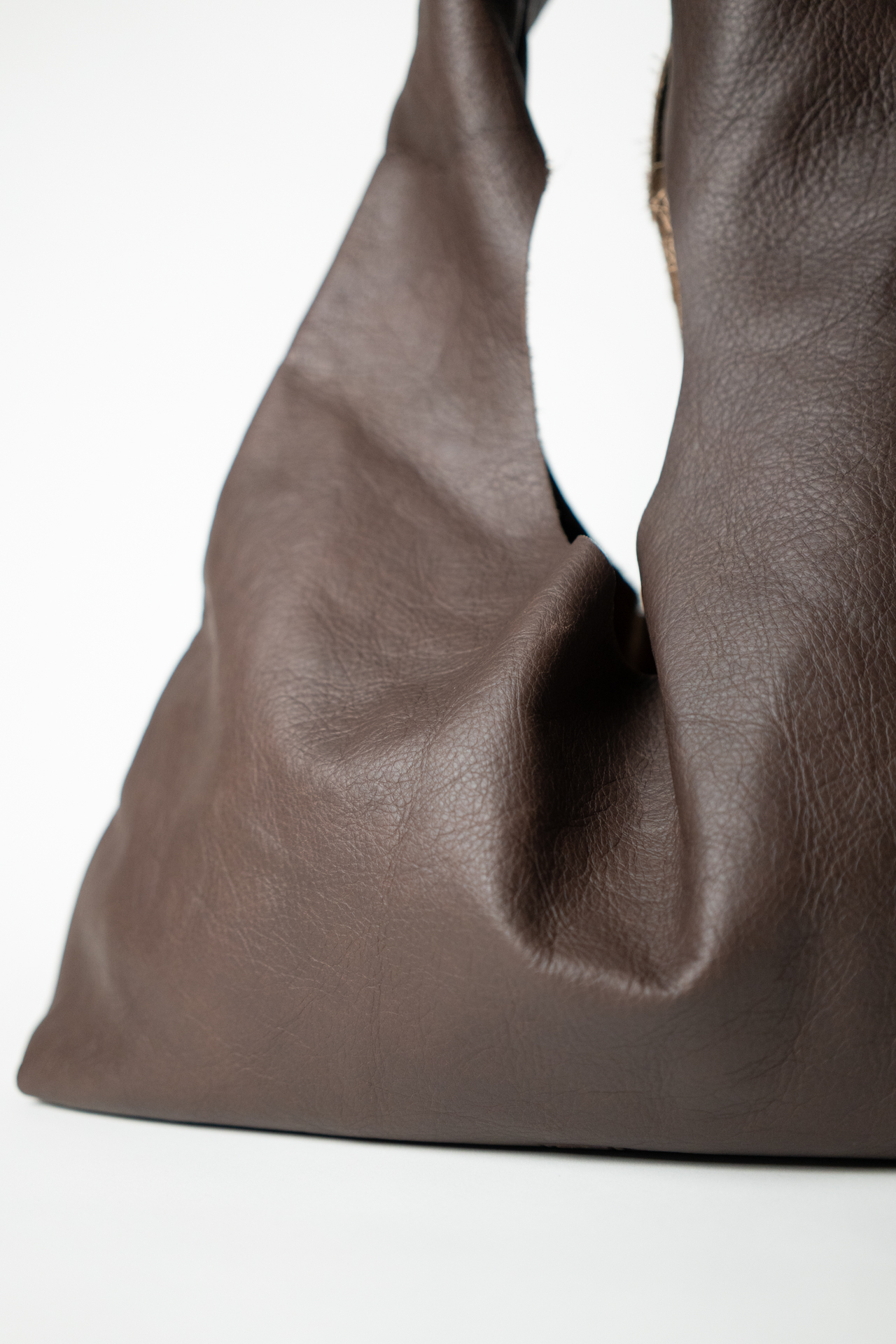 Torebki uszyte z najwyższej jakości skóry naturalnej, pozyskanej z odrzutów tapicerskich i resztek produkcyjnych innych marek. Każdy kawałek skóry pochodzi z drugiego obiegu, dzięki czemu ten projekt jest całkowicie przyjazny dla środowiska.